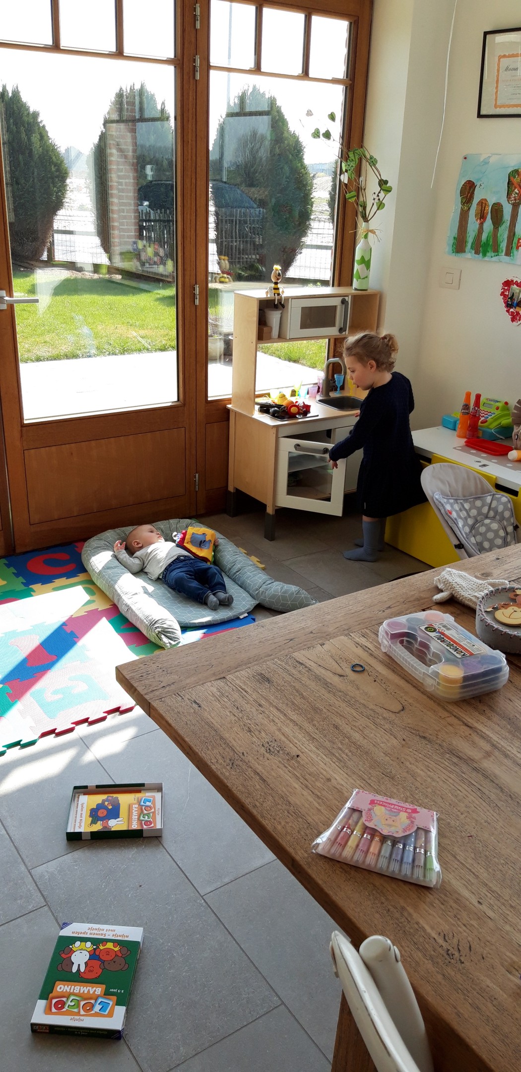 De printer zorgde ook al voor een discussie. Ik wilde enkele voorbereidingen voor een videocall afprinten, zij wilde een kleurplaat van een vlindertje afprinten. Haar argumentatie gaf de doorslag: ze had het écht, écht, écht wel nodig zei ze. En ze lachte vervolgens heel lief. We kwamen overeen dat ze mij daarna met rust ging laten. Ze was akkoord. Tot vijf minuten later toen ze een kleurplaat van een bloemetje kwam vragen. En dat tijdens mijn videocall.