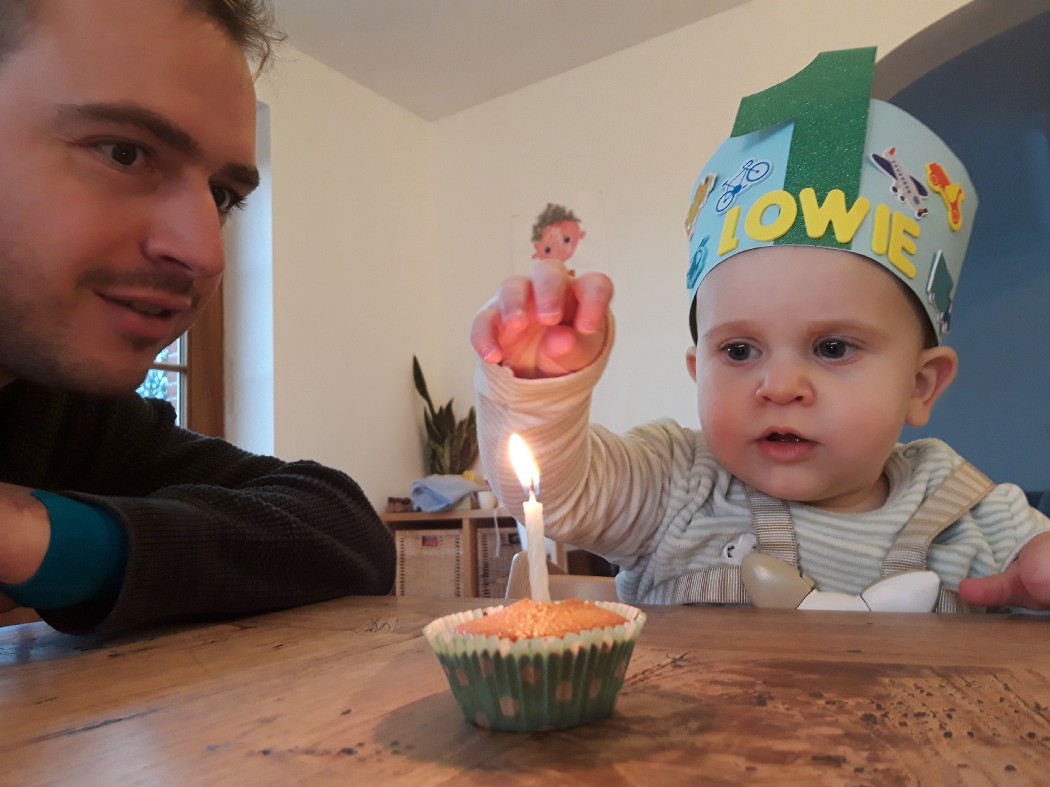 Tijdens de kantooruren, en erna, volgt hij mij als mijn schaduw. Hij moet heel moe zijn van dat vroeg opstaan want hij kruipt de hele dag. Wat wel een mooie vooruitgang is want in mijn vorig verslag lag hij de hele dag op zijn rug naar het plafond te kijken.